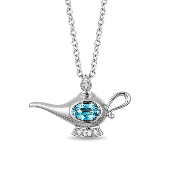 Have a question about Enchanted Disney Jasmine Oval Blue Topaz and Diamond Accent Genie Lamp Pendant in Sterling Silver - 19"?