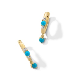 Turquoise and White Lab-Created Sapphire Dangle Hoop Earrings in Sterling Silver with 18K Gold Plate